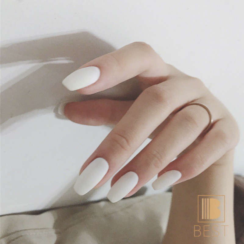 Amazon Com Awanka Coffin White Press On Nails Medium Length Fake Nails Ballerina Glossy False Nail Art Tips Artificial Stick On Nails Full Cover Instant Nails Acrylic Nails Manicure For Women And